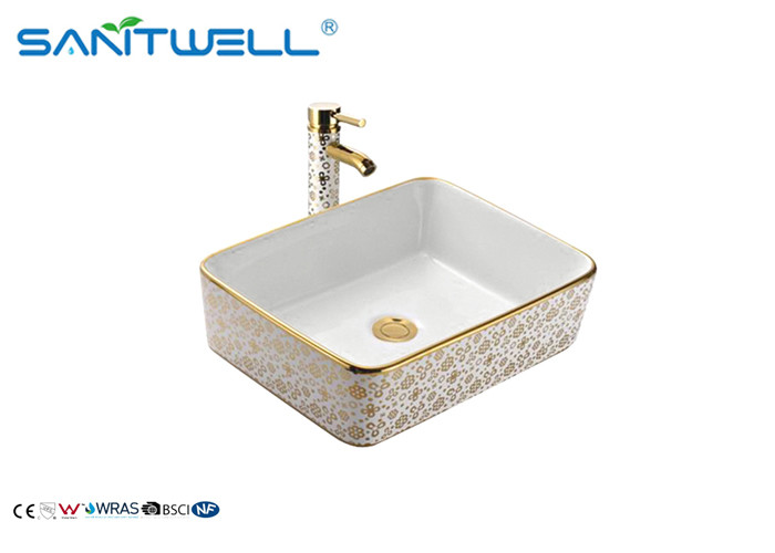 Hermoso arte de baño de cerámica flor de oro lavadora con amarillo